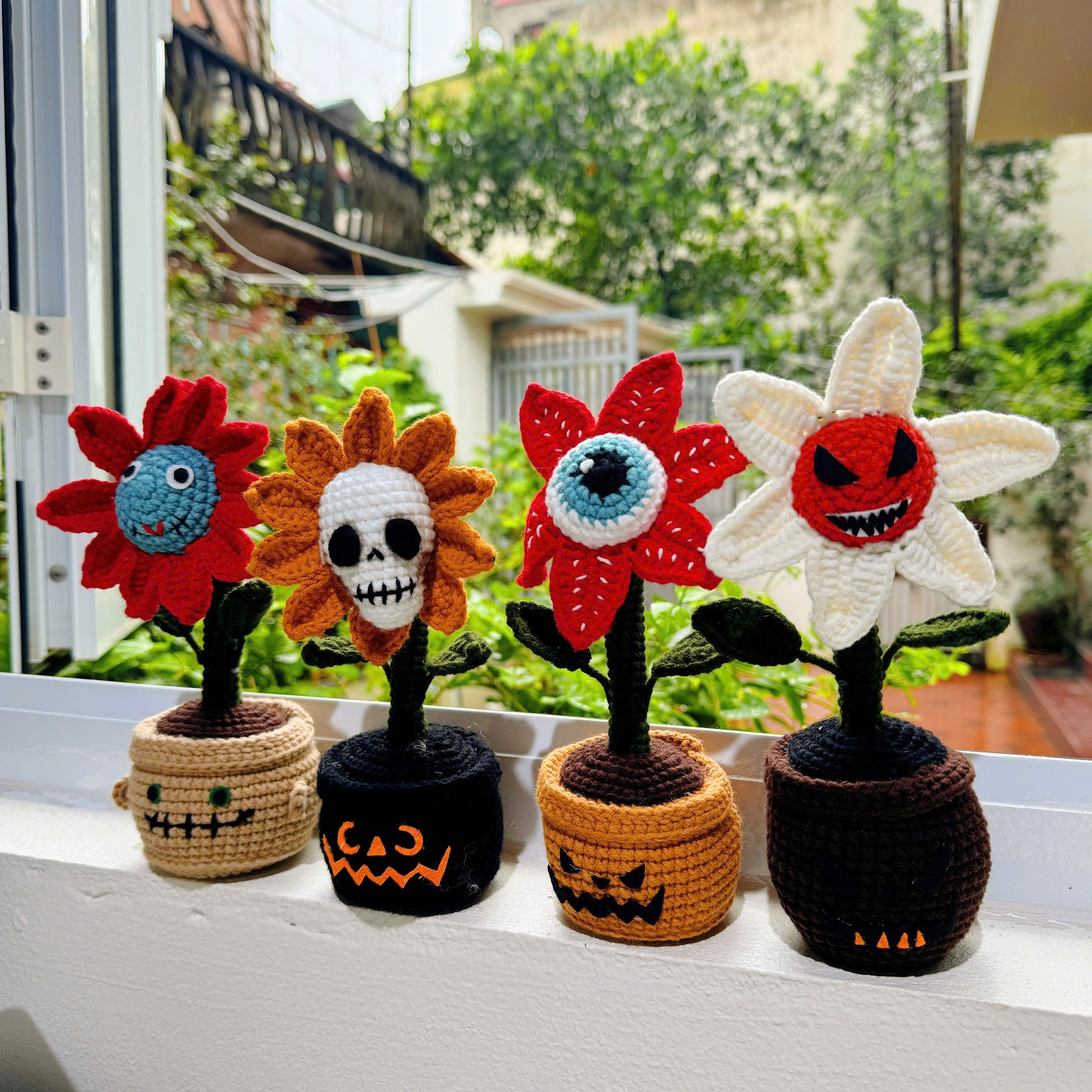 Add a touch of spooky charm to your space with these handmade crochet Halloween flowers! Each flower is carefully crafted with fun and creepy details β from skulls and eyeballs to pumpkin-themed pots β making them the perfect decoration for Halloween or a quirky gift for someone special.