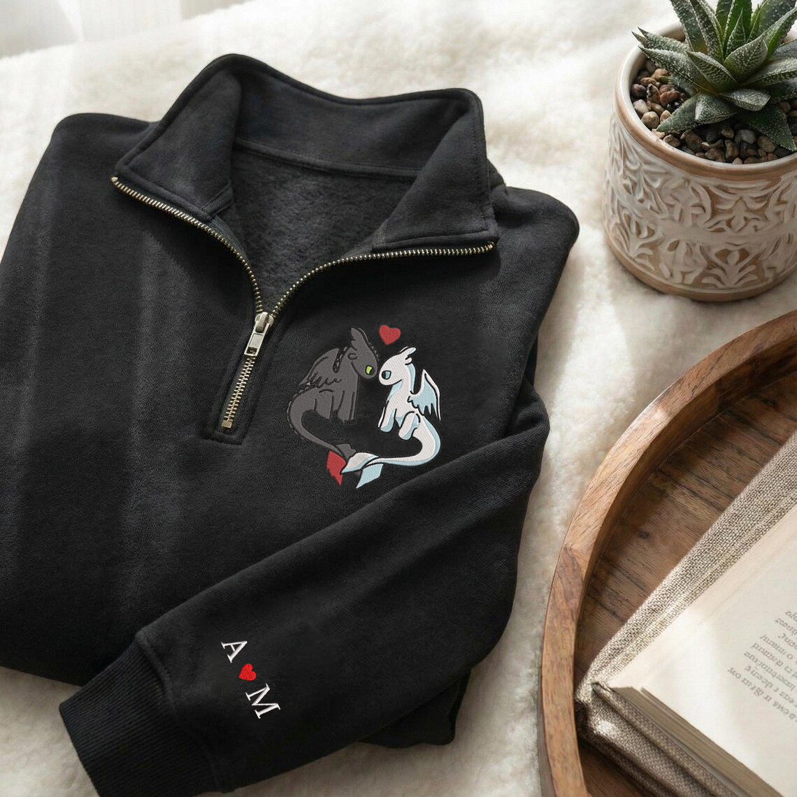 Valentine Personalized Embroidered Dragon Couple Hoodie Sweatshirt T-Shirt